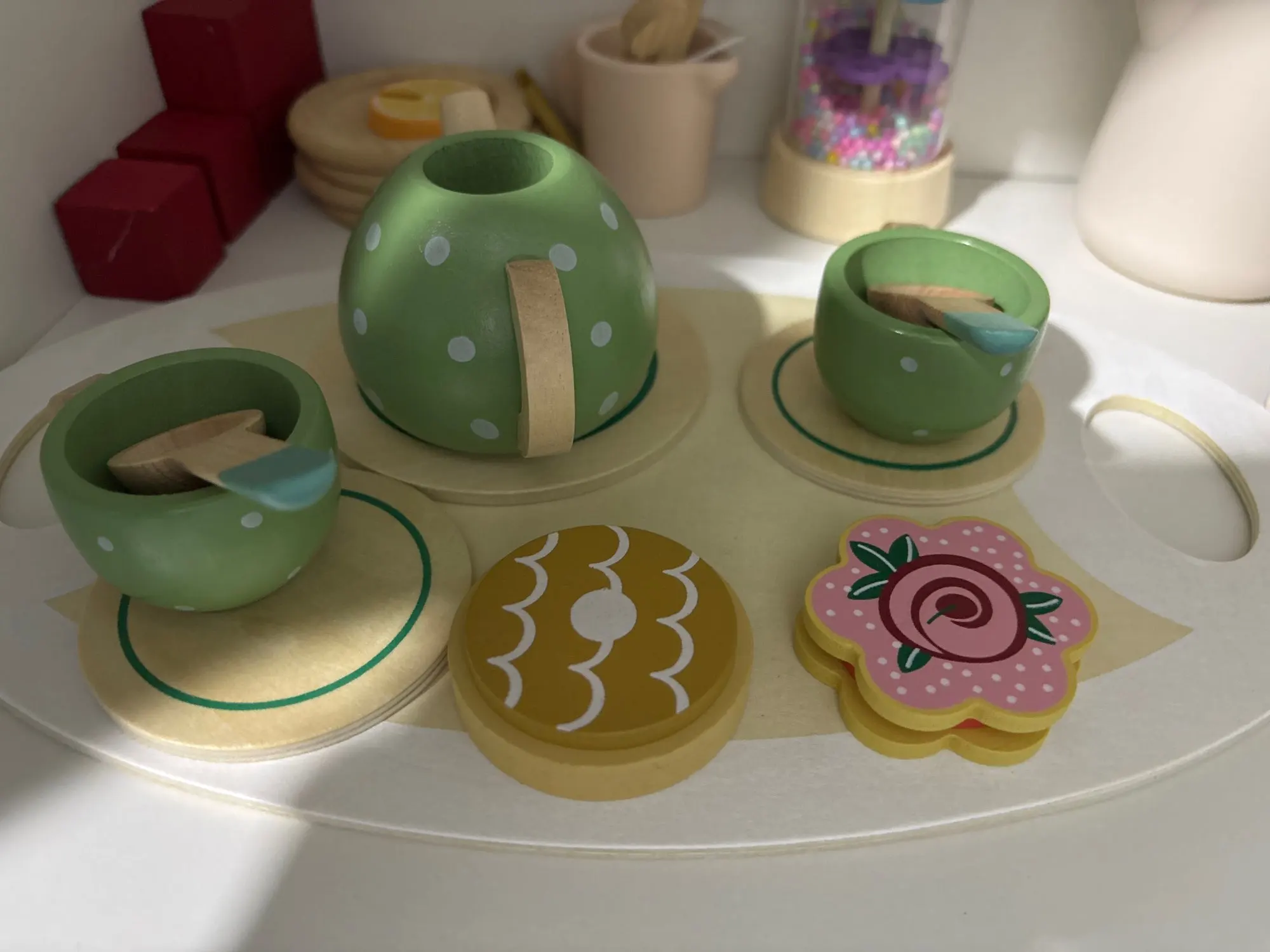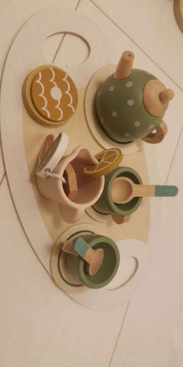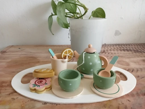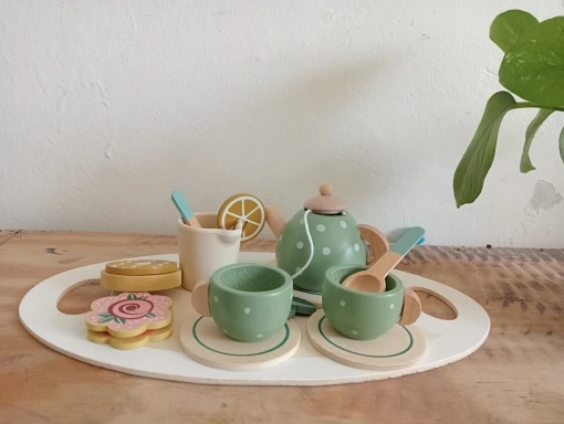A charming wooden tea set that lets your little host pour, serve, and play — safely and creatively.